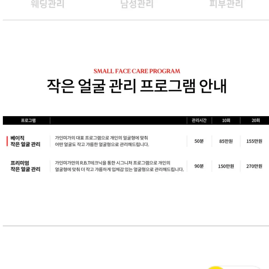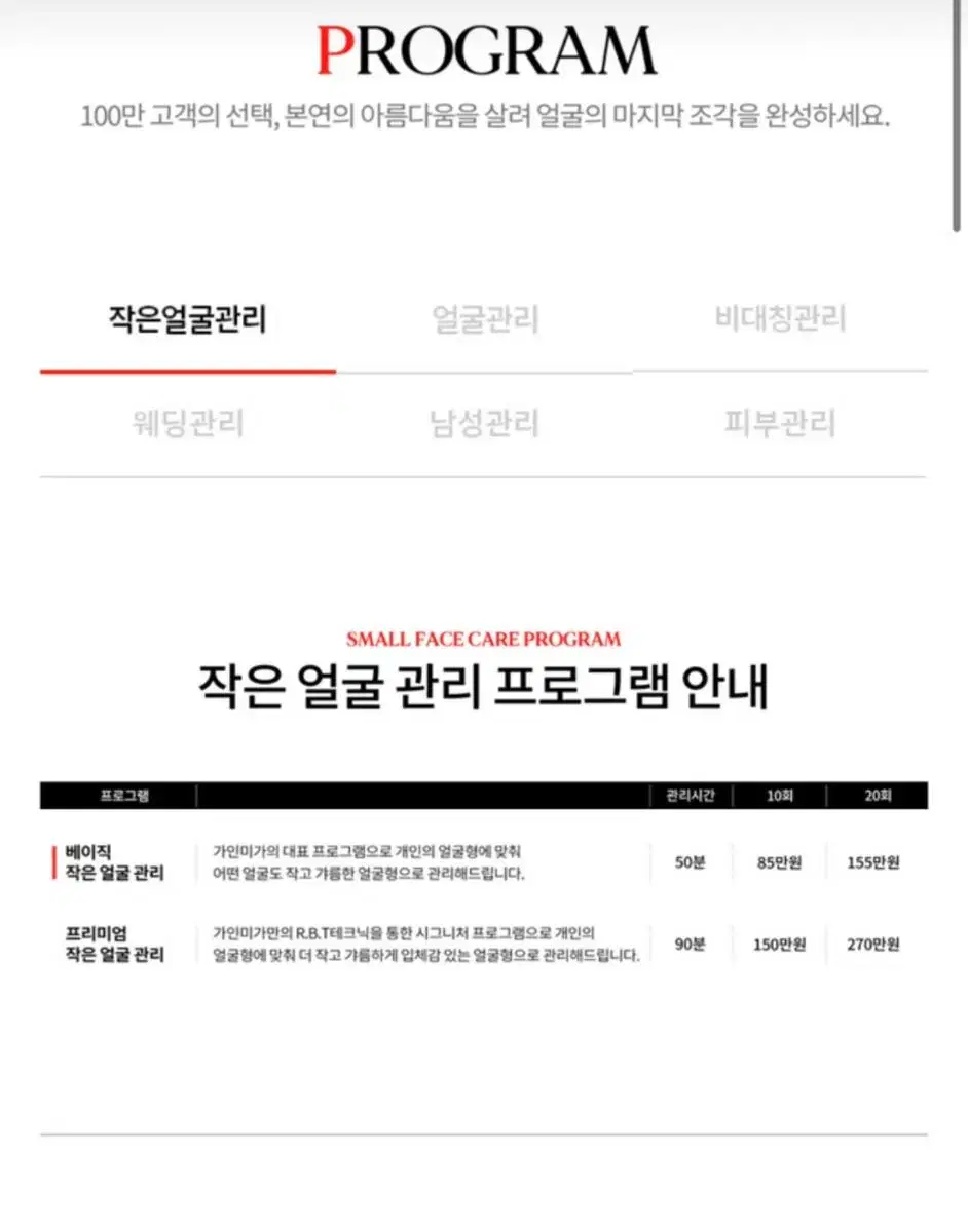 작은 얼굴 시술부터 안면비대칭, 신부 시술까지 경락 마사지 프로그램도 다양해 나에게 맞는 것을 선택할 수 있다. 가끔 할인도 있어서 가는데, 내가 원하는 시술이 없어서 의기소침할 때가 몇 번 있다. 여기는 그런 걱정 NO!