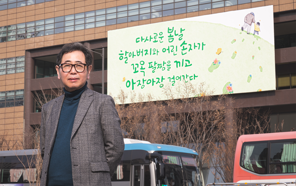 오늘 주인공은 따스한 봄바람 같은 시로 광화문 광장을 지나는 시민들의 마음에 꽃잎을 수놓았다., 김선태 시인을 직접 만나다.