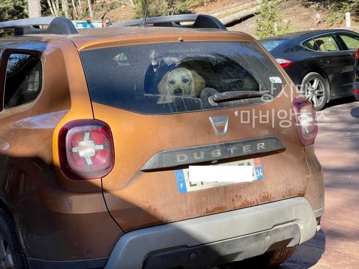 주차장을 나와 차에 탄 강아지와 다정한 눈인사를 나눌 수 있었다.