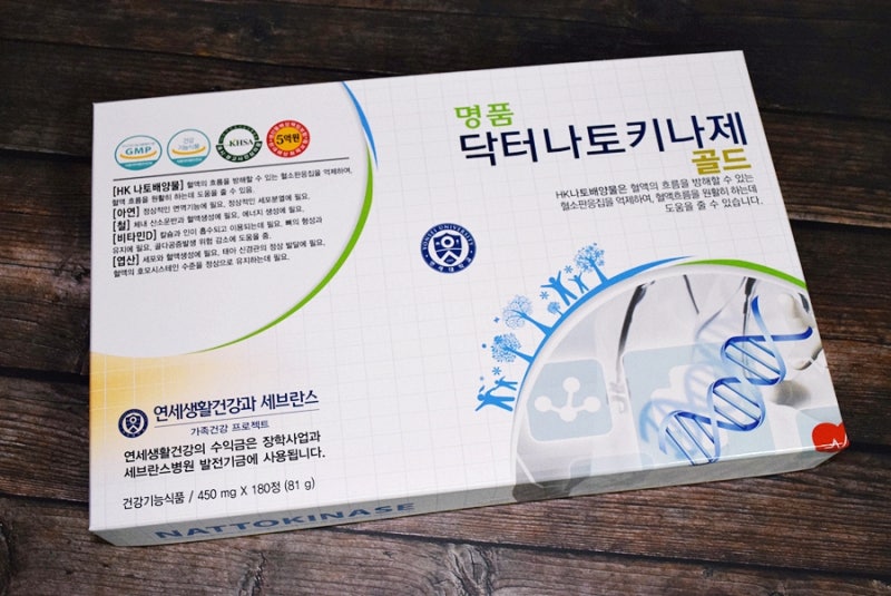 연세의 명물 닥터나토키나제 골드박스는 #나토발효과정에서 생성되는 #나토키나제 효소가 #혈소판 응집을 억제하면서 #혈류를 방해할 수 있는 HK 낫토배양액이 들어있는 미니박스 6개로 구성되어 있습니다. 혈액순환을 도와준다고 해서 혈액순환에 아주 좋아요! Premium Dr. Nattokinase Gold는 2,000 단위 이상의 섬유소 분해 효소 활성 물질을 함유하여 나토키나아제의 주요 활동을 보여줍니다!