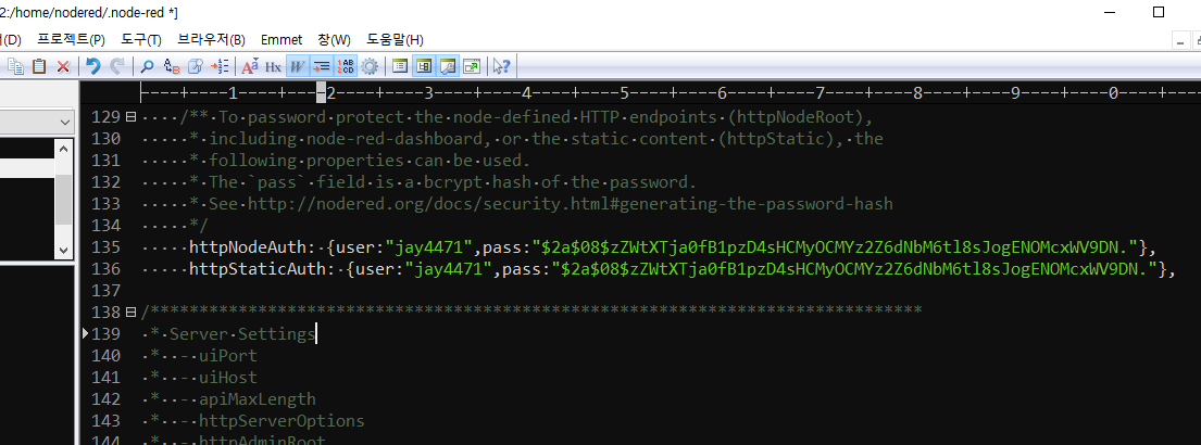 httpNodeAuth: {사용자:”사용자”,패스:”$2a$08$zZWtXTja0fB1pzD4sHCMyOCMYz2Z6dNbM6tl8sJogENOMcxWV9DN.”},