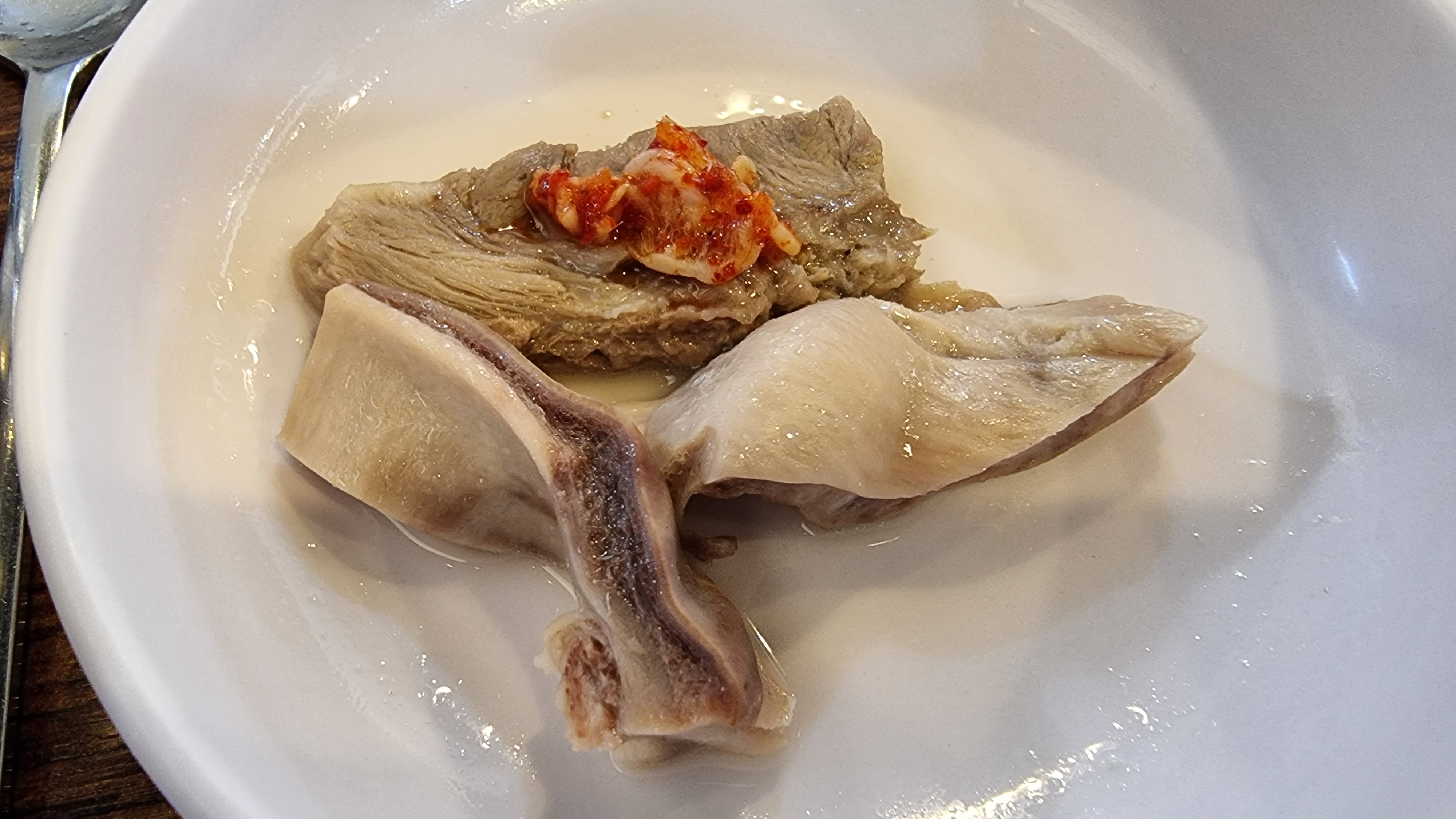 사골 육수에 살짝 데운 순대 위에 새우젓을 얹어 한 입 베어물어 보세요.