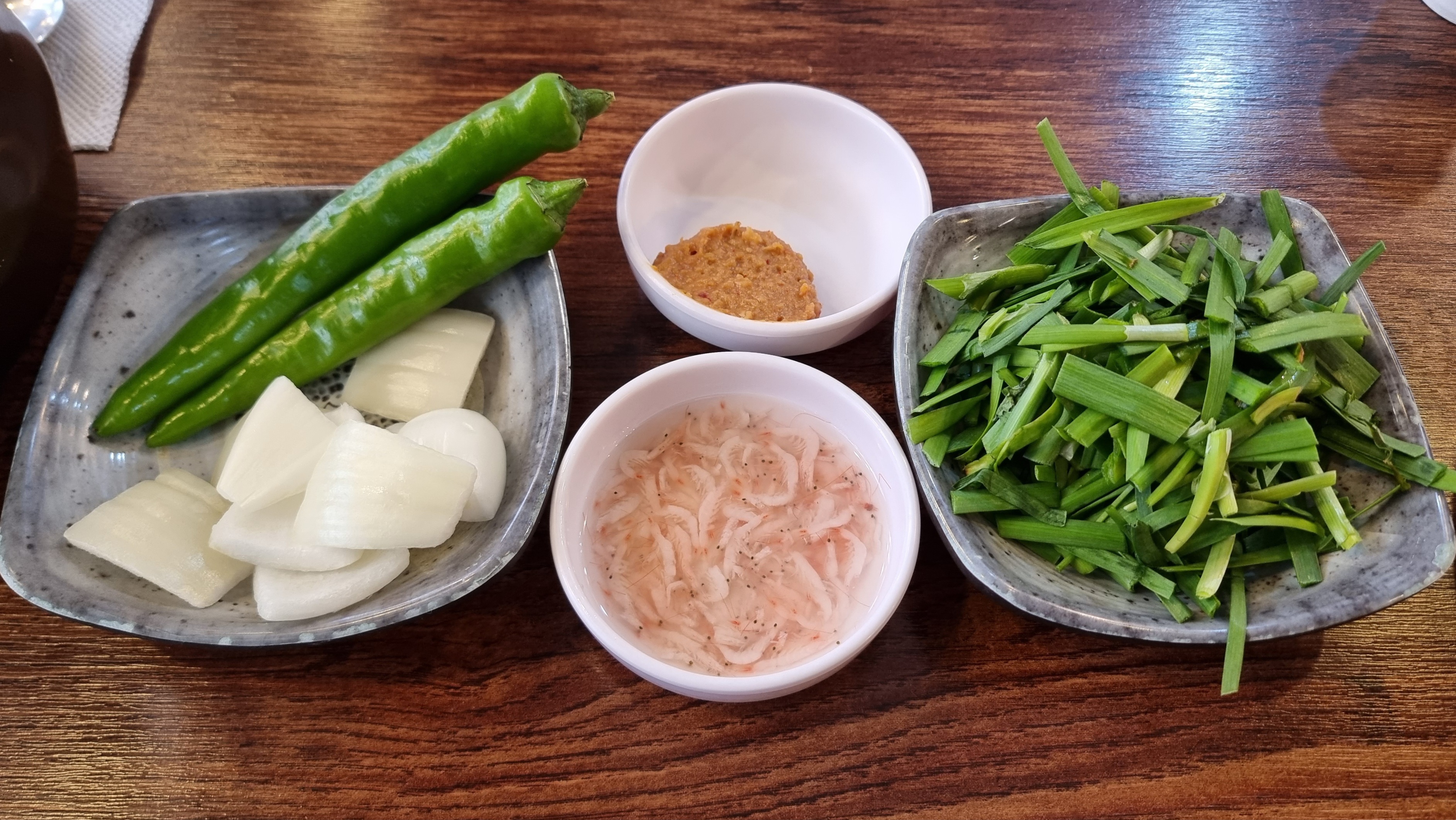 김치 깍뚜기와 함께 나오는 기본 밑반찬들입니다. 순대국밥이 나오면 국밥에 추가해서 드시면 됩니다 매장 안에 정직바가 있어 고추, 양파, 쌈장, 쪽파를 추가로 가져오시면 됩니다.