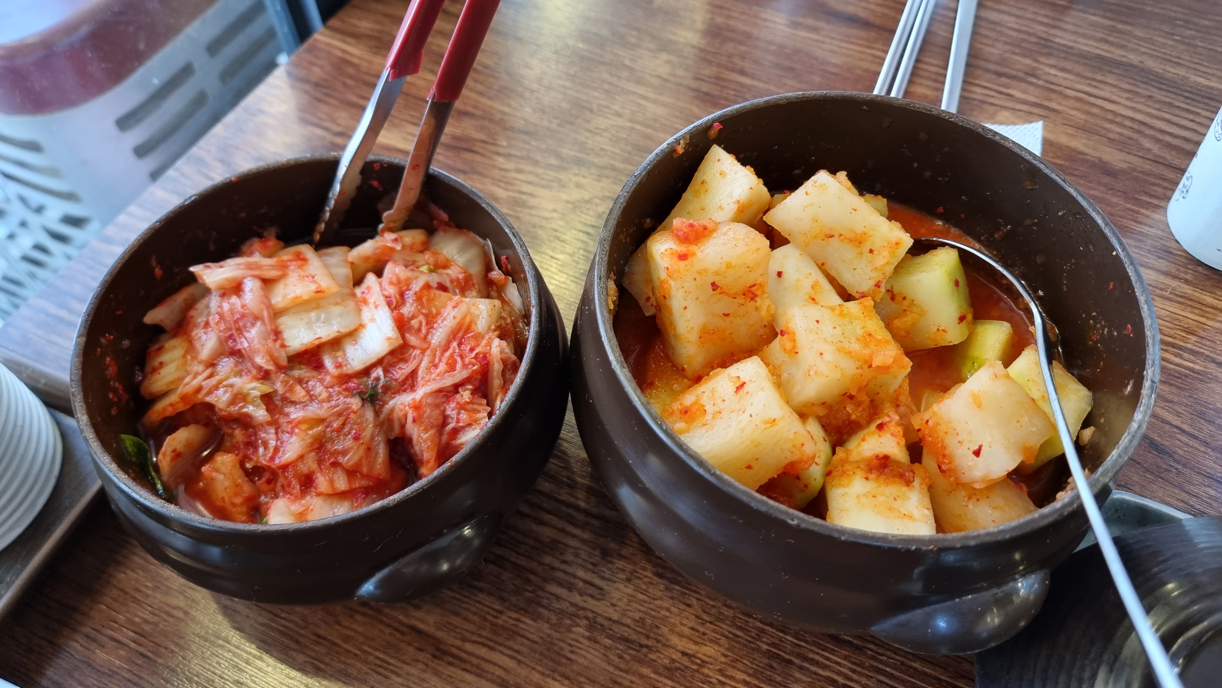 김치와 깍뚜기는 각 테이블에 항아리에 준비되어 있습니다.