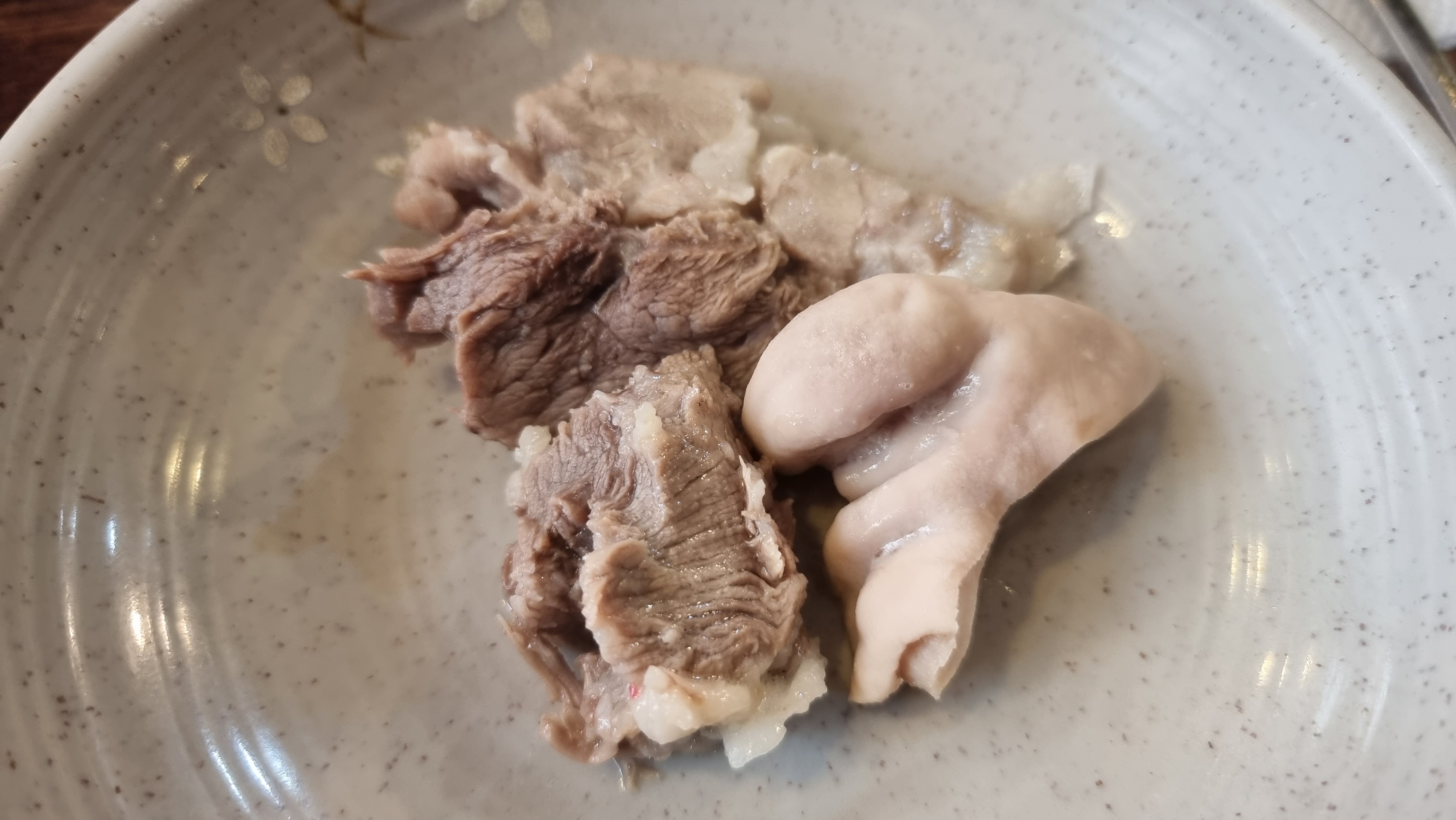 모듬 수육을 주문하면 국산 순대+돼지고기+오소리감투가 함께 나온다.