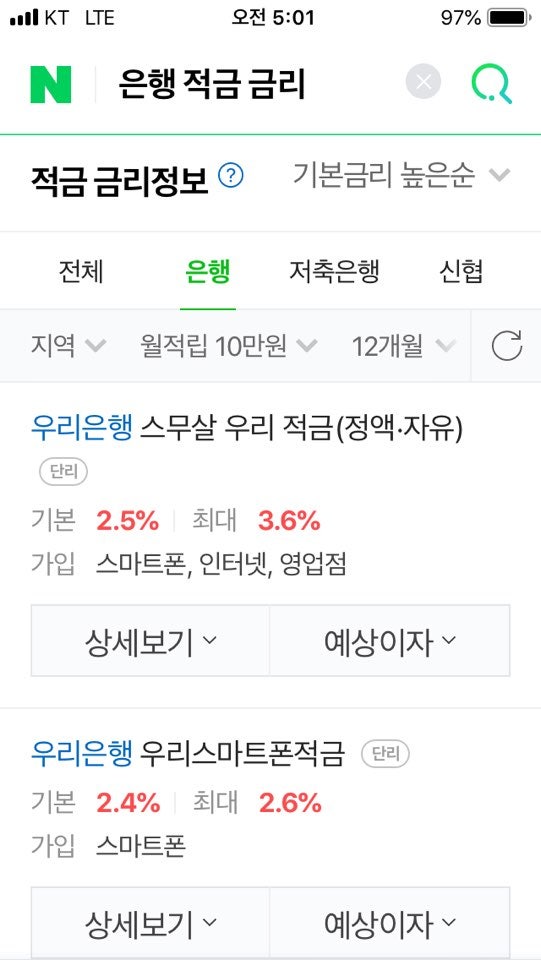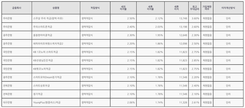 정기적금 이자 높은 은행 12개월 최고 우대금리 기준