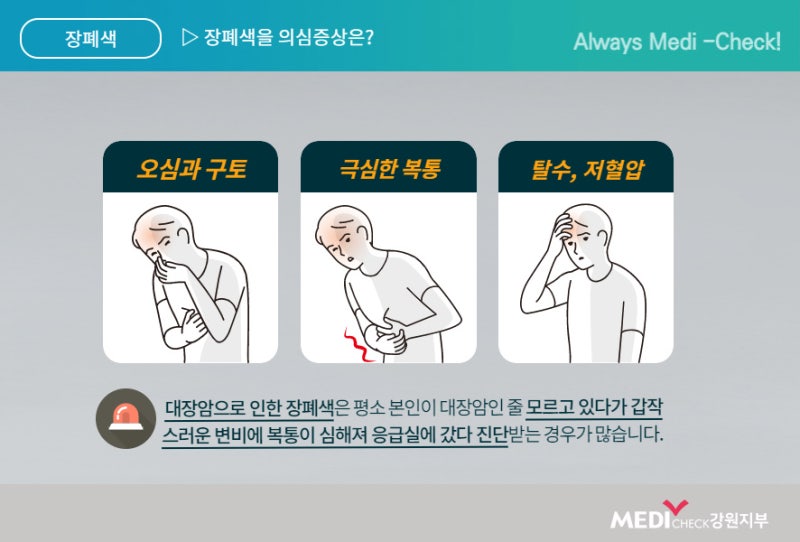 장폐색이란 대장이나 소장의 여러 원인으로 인해 조금 일부가 막혀 음식이나 장의 내용물이 통과하지 못하게 되고 변과 배변 활동이 잘 되지 않아 배변과 가스가 차는 것을 말합니다. 장폐색 원인