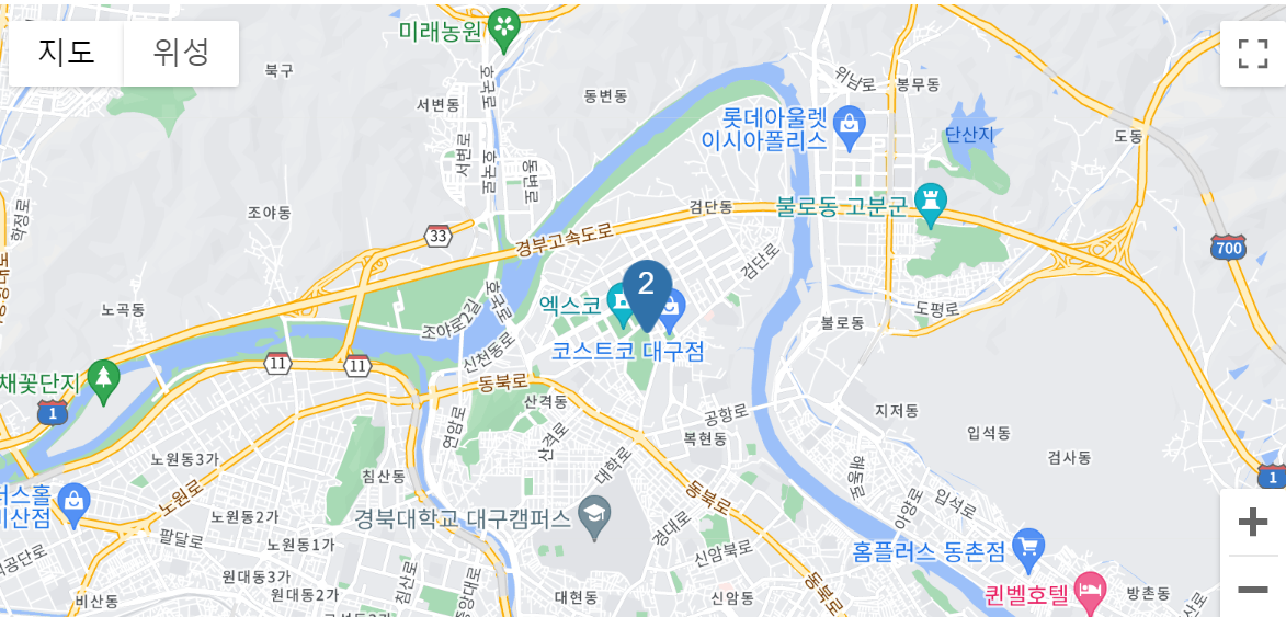 코스트코 대구점은 대구광역시 북구 검단로 97에 위치하고 있으며 오전 9시부터 오후 10시까지 영업한다. 전화번호는 1899-9900이며 Google 지도에서 길을 쉽게 찾을 수 있습니다.”