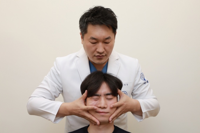 (안면추나) 자생이 개발한 안면마비용 추나. 한의사가 신경과 근육을 재훈련하는 도수치료입니다. 그것은 안면 신경과 모든 근육을 올바르게 정렬합니다.