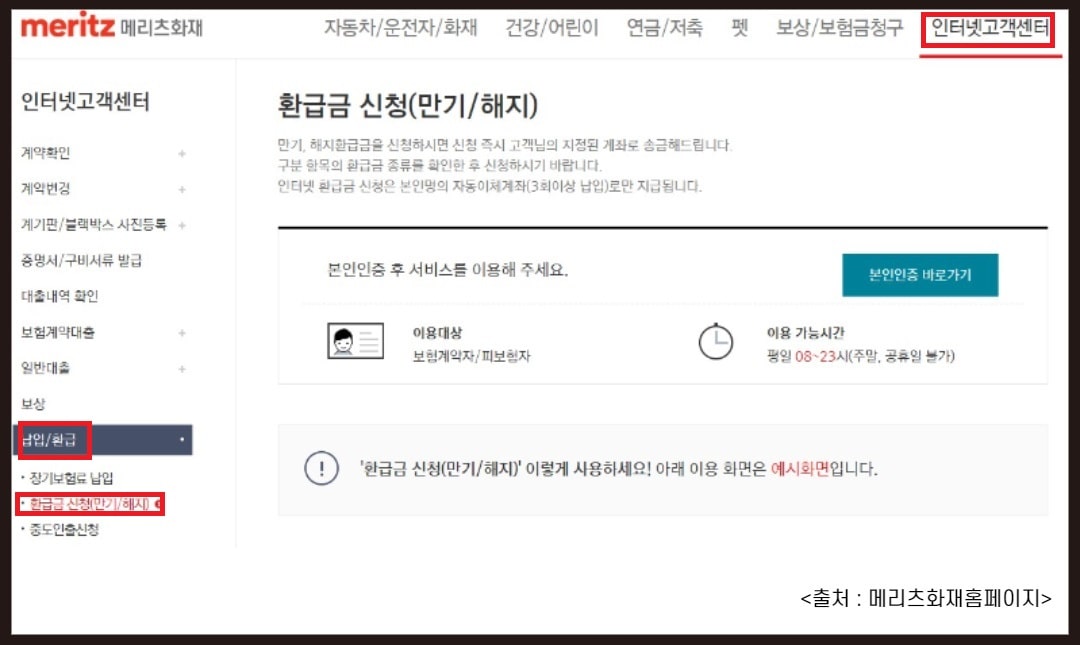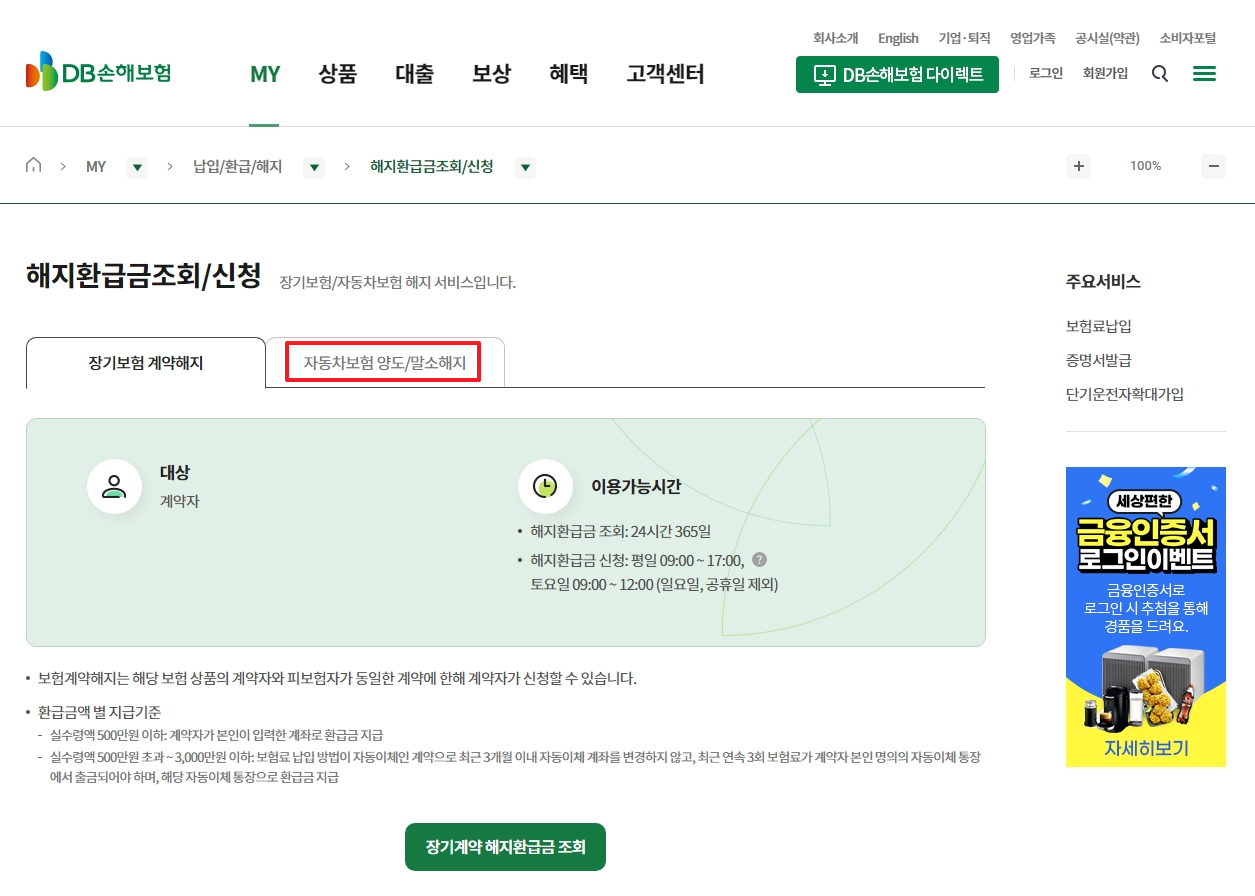 해약 및 해약조회방법, 해약수수료납부환급정보, 동부화재보험금청구정보 조회
