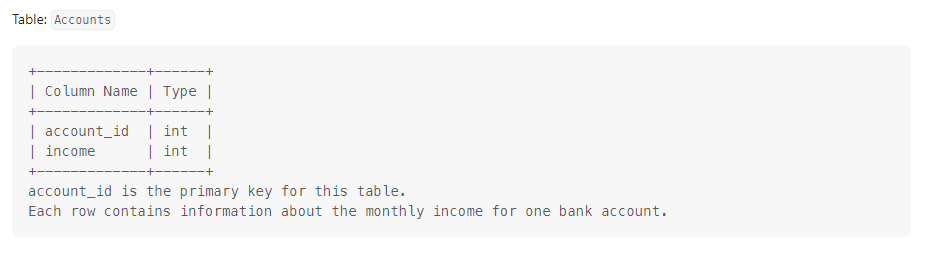 각 급여 범주의 은행 계좌 수를 보고하는 SQL 쿼리를 작성하십시오. 급여 범주는 다음과 같습니다.